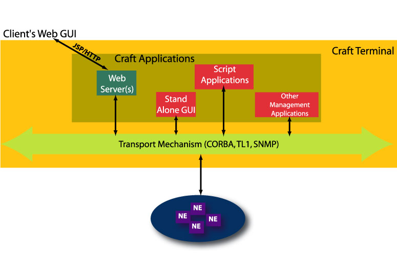In the earlier stages of equipment development a local craft interface was basically a command interface to manage the equipment by attaching a VT100 terminal and a key board to the device. With the advent of laptop computers local crafts have evolved into bigger applications using a more complex interface (CORBA, HTML, etc) to talk to agents inside the equipment.